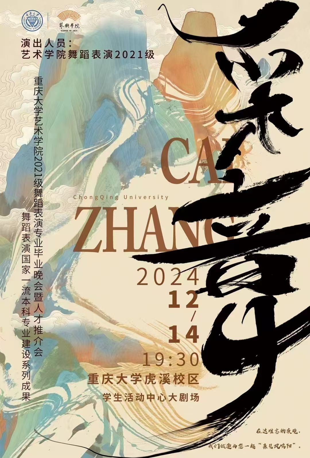 霜节亭亭直,凌云发采章。2024年12月14日19时30分,伴随着倒计时的钟声敲响,“采章”——森林舞会线上老虎机游戏 2021级舞蹈表演专业毕业晚会暨人才推介会,在虎溪校区大剧场正式拉开帷幕。此次活动是舞蹈表演国家一流本科专业建设、重庆市一流本科课程系列成果展示。重庆市文联副主席、重庆市舞蹈家协会主席董进波,重庆大学党委副书记冯业栋等领导和嘉宾到场观摩指导,森林舞会 党委书记蒋华林、副书记王琦、副院长夏进军、副院长彭...