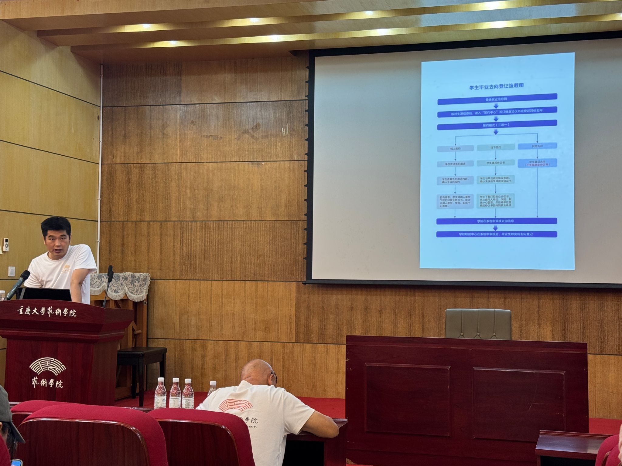 陈龙针对毕业生就业手续操作流程及毕业生就业信息网的使用进行了细致讲解,实操演示了利用重庆大学毕业生就业信息网获取招聘信息、投递简历,以及如何关注各类就业政策和通知等。陈龙还解读了毕业生就业工作指南中的关键环节,如就业手续办理流程、就业协议签订要点等,帮助毕业生对就业流程有清晰的认知,避免因流程问题影响就业进度。