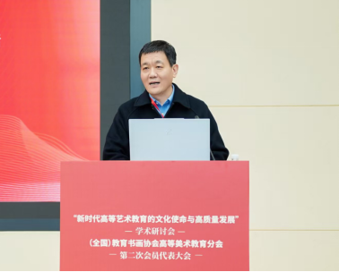 大会隆重聘任鲁晓波教授、范水教授担任分会名誉会长。张楠木教授在当选发言中指出,分会自创立以来取得了高等美术教育事业重要成绩,在新的历史起点,将带领分会从基础性、先导性、战略性维度审视高等美术教育的发展机遇及现实挑战,不断推进传统艺术教育与美育转型发展,在民主、开放、务实、创新的学术环境中开创分会教育事业新未来。(全国)教育书画协会会长刘利教授对新一届理事会和张楠木会长表示热烈的祝贺,对上一届理事会和鲁晓波会长表示真诚的谢意,并对新一届分会提出三点希望:一要聚焦育人质量这一核心任务,坚守艺术教育的根本使命;二要深化内涵建设这一关键路径,应对学科发展的机遇与挑战;三要拓展社会服务这一时代责任,彰显美术教育的时代价值。