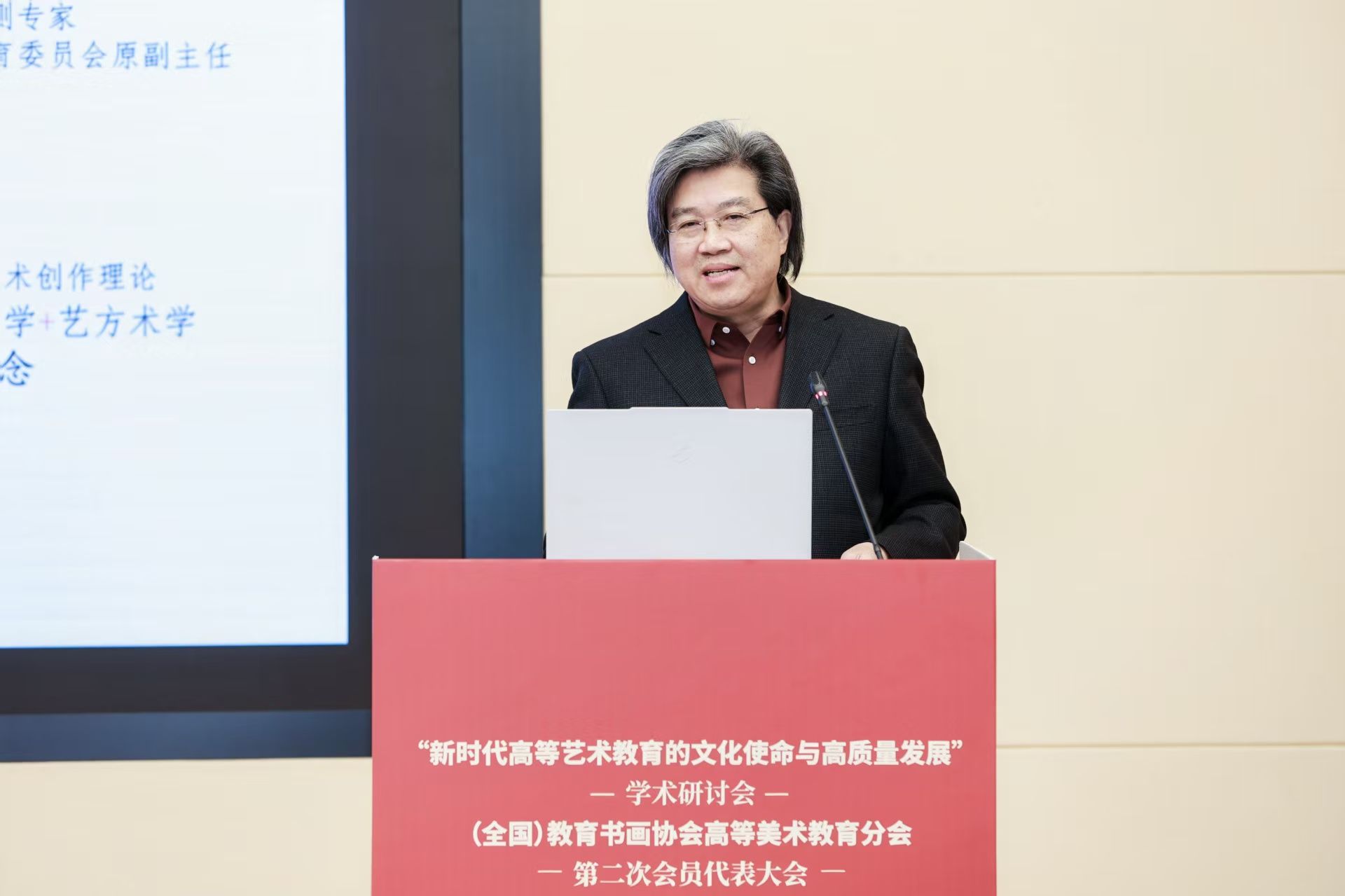 黄宗贤教授代表分会报告了此次大会的学术共识,他指出,来自不同办学单位的代表们深入讨论了新时代高等艺术教育的文化使命与高质量发展,分享了人才培养、教学改革和学科建设的经验,同时表达了面对新机遇和挑战的焦虑与希望,达成了集体共识:我们以习近平文化思想为根本指导思想,自觉融入国家文化发展大局与教育强国建设战略,坚守思想引领,深化数字转型,强化协同创新,通过艺术与科技的深度融合培养高层次复合型艺术人才,不断推进美术教育高质量发展,为文化强国和教育强国建设贡献高等美术教育分会的学术智慧和集体力量。