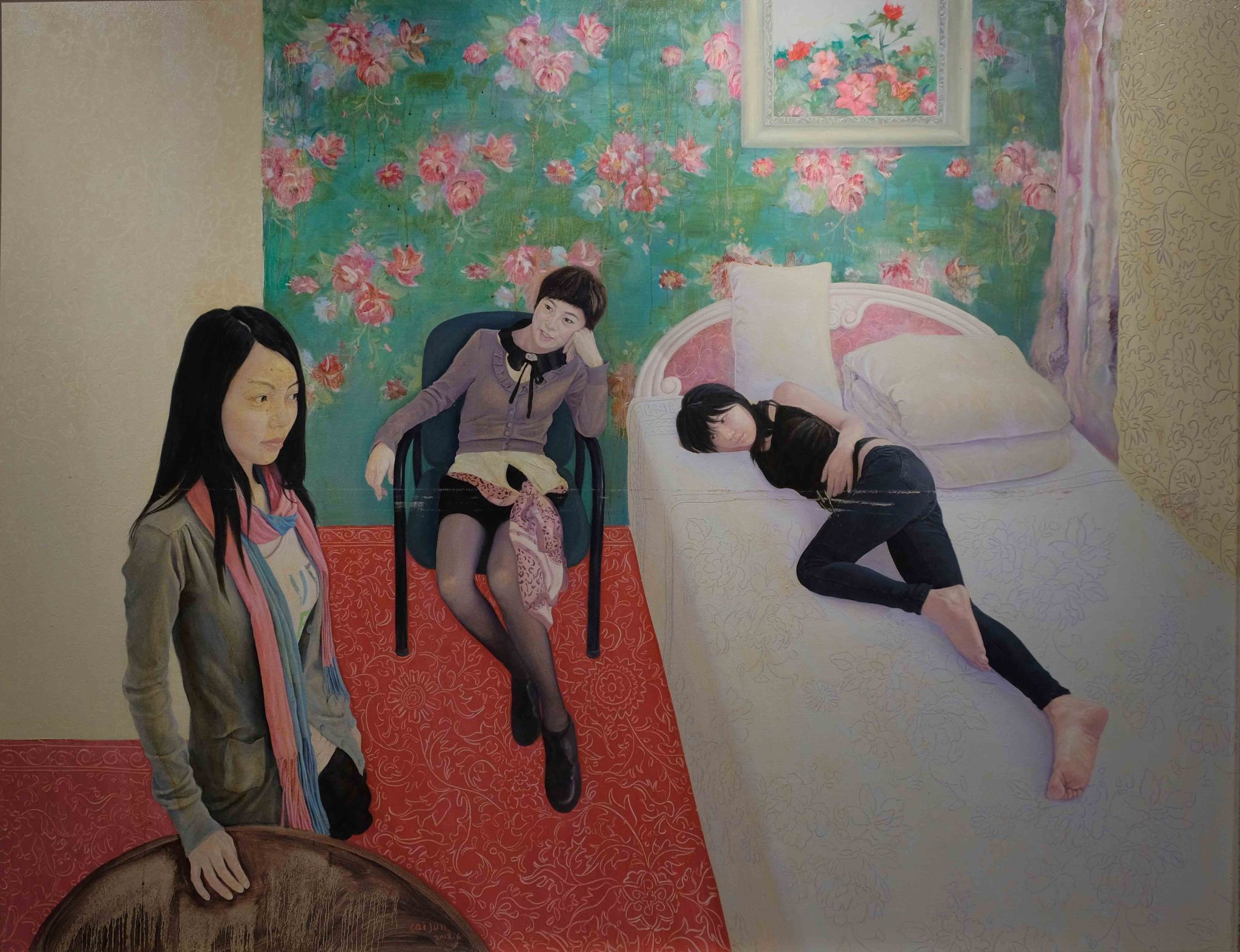 武若尘 《小镇上的姐妹们》油画 120cm×120cm